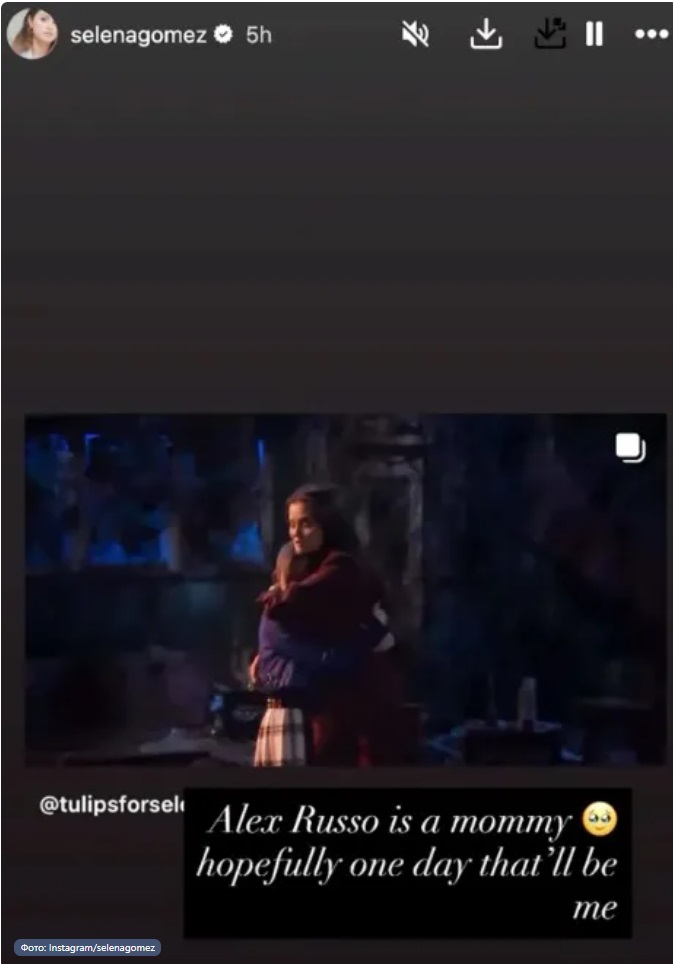 Артистка опубликовала в stories Instagram кадры сериала "Волшебники из Вэйверли Плэйс", где ее героиня Алекс Руссо становится матерью.