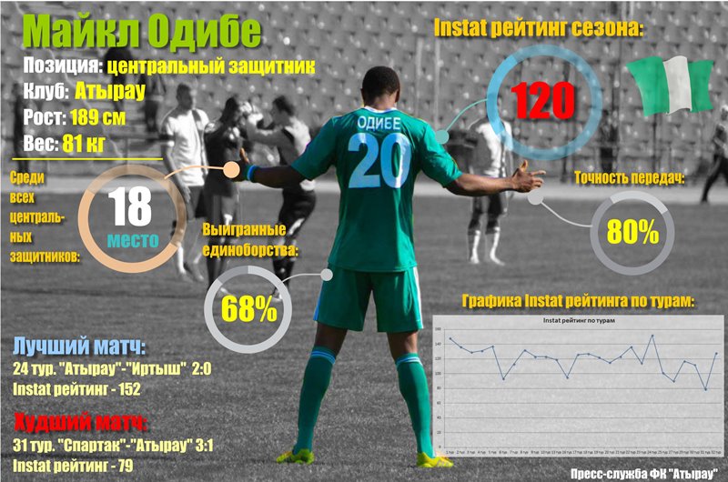 Нельзя утверждать, что Одибе в 2014 году провел свой лучший сезон, но его статистические показатели — лучшие среди всех защитников «Атырау».