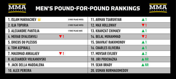 Лидером рейтинга остается россиянин Ислам Махачев, который потерял место в топе P4P UFC. На втором месте расположился испано-грузинский боец Илия Топурия. Третье место списка закрепил за собой чемпион UFC наилегчайшего веса Алешандре Пантожа.