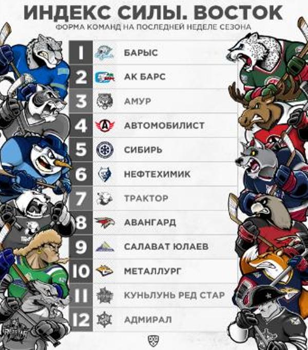 Официальный сайт Континентальной хоккейной лиги опубликовал индекс силы команд последней игровой недели регулярного чемпионата, по которому астанинский «Барыс» был признан лучшим в Восточной конференции, сообщает Sports.kz.