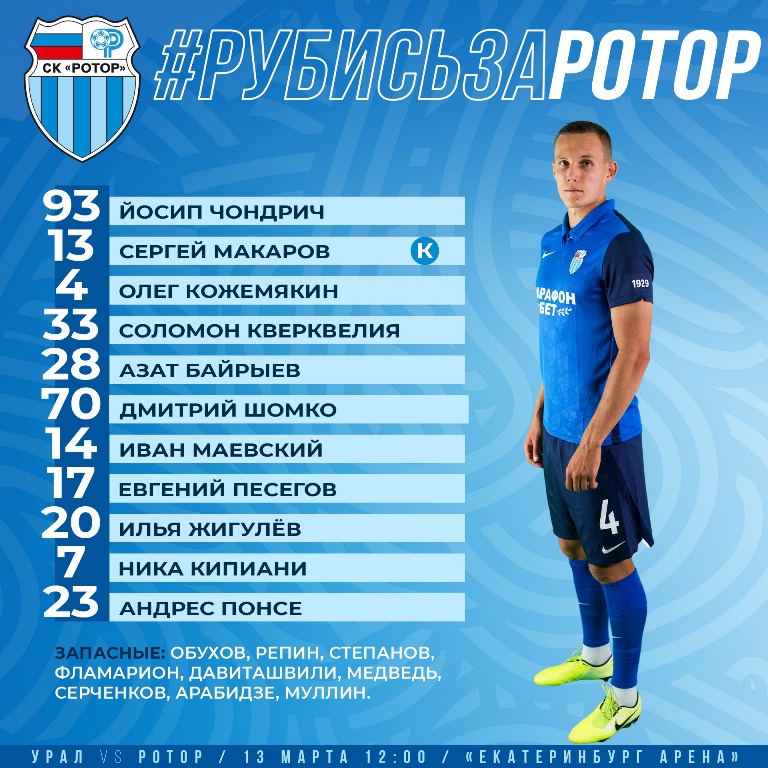Перед матчем пресс-служба «Ротора» опубликовала стартовый состав команды, куда был включен фтболист сборной Казахстана Дмитрий Шомко. Также на поле в старте выйдет экс-игрок «Астаны» Иван Маевский. Алексей Щеткин и Юрий Логвиненко в заявку не попали.