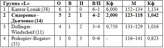 Dollinger/Windscheif (Германия, 11), Сидоренко/Дьяченко (14), Prokopiev/Bogatov (Россия, 35), Kantor/Losiak (Польша, 38)