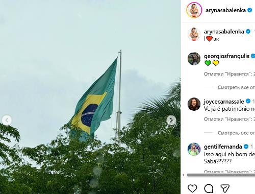 Арина Соболенко опубликовала пост с подборкой фотографий на личной странице в социальных сетях, из которого стало известно, что спортсменка проводит время в Бразилии, на родине своего бойфренда Георгиоса Франгулиса.