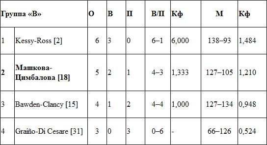 23.05. Bawden/Clancy (Австралия, 15) — Машкова/Цимбалова 1:2 (21:18, 19:21, 7:15)