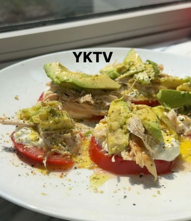 Для того чтобы приготовить закуску по рецепту Хейли, понадобятся крупные помидоры, творожный сыр, куриная грудка или индейка и авокадо. Для заправки подойдёт оливковое масло.