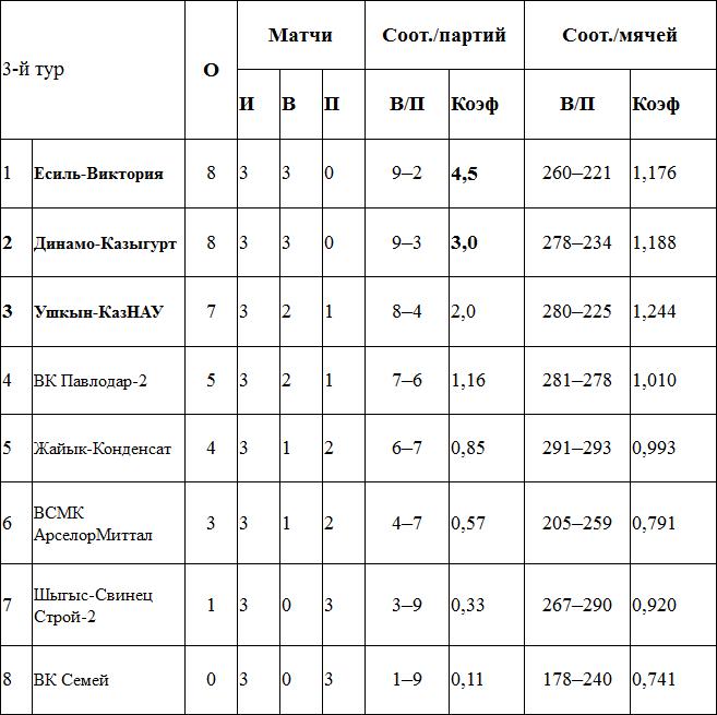 Турнирное положение третьего тура: