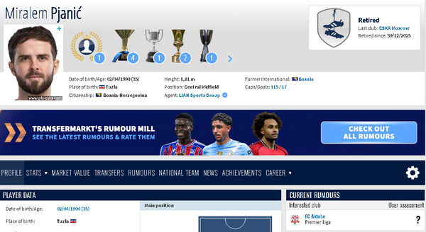 Авторитетный международный портал в аккаунте титулованного футболиста опубликовал информацию об интересе казахстанского клуба. Четырехкратный чемпион и двукратный обладатель Кубка Италии в прошлом году официально завершил карьеру. Его последней командой был московский ЦСКА, где он выступал в течение 2025 года. За свою карьеру Пьянич провел 666матчей, забил 77 голов и раздал132 результативных ассиста.