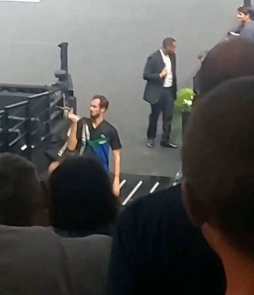 Покидая стадион, в порыве злости Медведев неоднократно показал французской публике свой средний палец. Момент зафиксировал один из зрителей на трибуне.