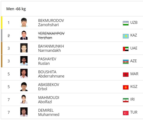 Спортсмен национальной команды Казахстана, выступающий в весовой категории до 66 кг, был исключен из рейтинга Международной федерации дзюдо (IJF) в начале января 2026 года. Причиной стало нарушение антидопинговых правил.