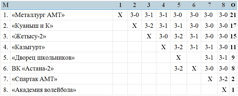 «Металлург АМТ» — «Куаныш и К» — 3:0 (25-20, 25-18, 25-20)