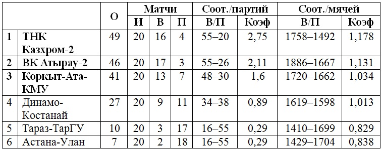 (Хромтау), ВК «Атырау-2», «Коркыт-Ата-КМУ» (Кызылорда),