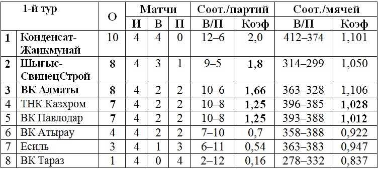 Подгруппа «Б»: ВК «Алматы», ВК «Павлодар», «Шыгыс-СвинецСтрой», ВК «Тараз».