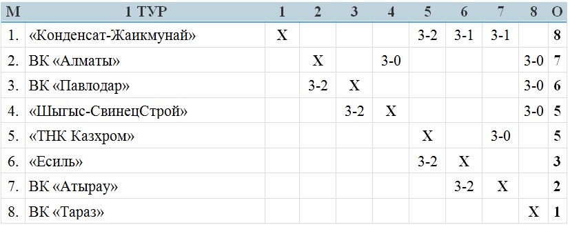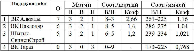 Подгруппа «Б»: ВК «Алматы», ВК «Павлодар», «Шыгыс-СвинецСтрой», ВК «Тараз».