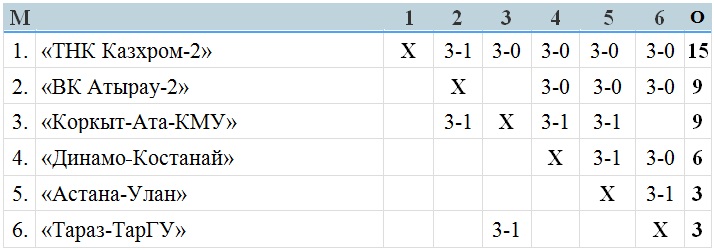 ВК «Атырау-2» — «Коркыт-Ата-КМУ» — 1:3 (25-18, 22-25, 20-25, 18-25)