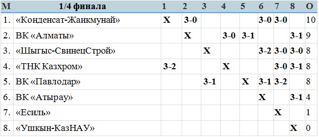 В 1/4 финала встречаются: ВК «Алматы», «ТНК Казхром» (Хромтау),