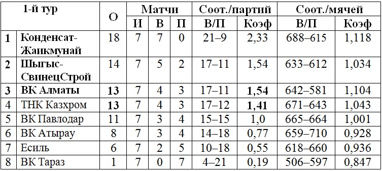 Подгруппа «Б»: ВК «Алматы», ВК «Павлодар», «Шыгыс-СвинецСтрой», ВК «Тараз».