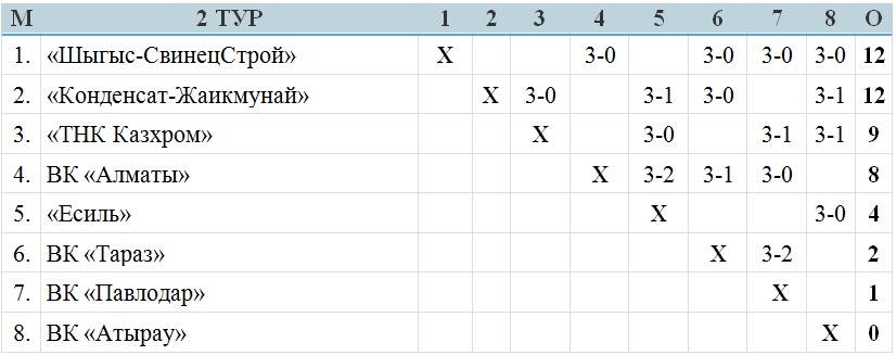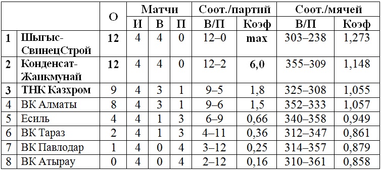 Подгруппа «Б»: ВК «Алматы», ВК «Павлодар», «Шыгыс-СвинецСтрой», ВК «Тараз».