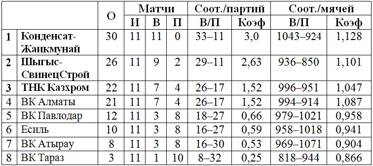 (Петропавловск), «Шыгыс-СвинецСтрой» (Усть-Каменогорск), ВК «Тараз».