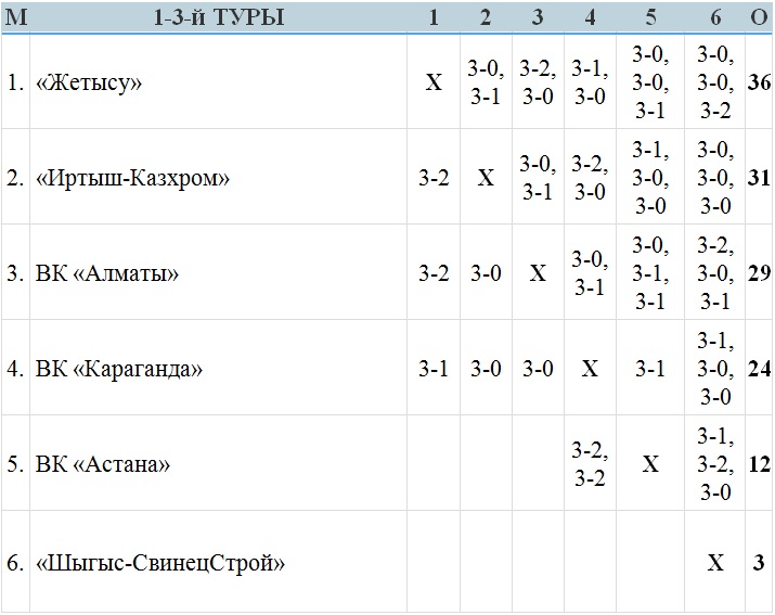 3-й тур (13-18 января 2014. Усть-Каменогорск). Победители — «Жетысу» и ВК «Алматы»;