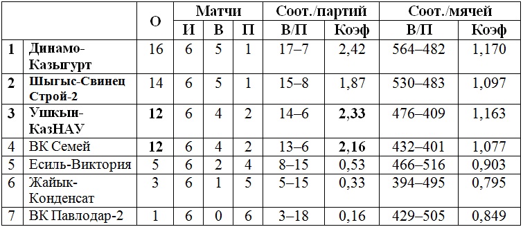 ВК «Павлодар-2», «Есиль-Виктория» (Петропавловск), «Жайык-Конденсат»