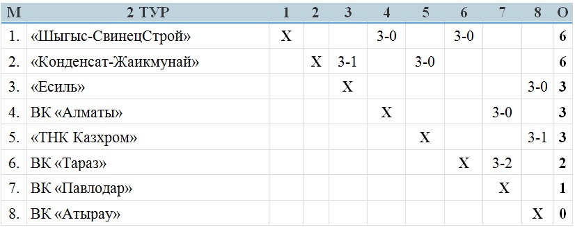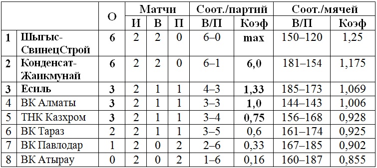 Подгруппа «Б»: ВК «Алматы», ВК «Павлодар», «Шыгыс-СвинецСтрой», ВК «Тараз».