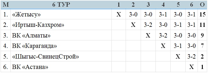 6-й тур (28 марта-02 апреля 2014. Талдыкорган). Победитель — «Жетысу»