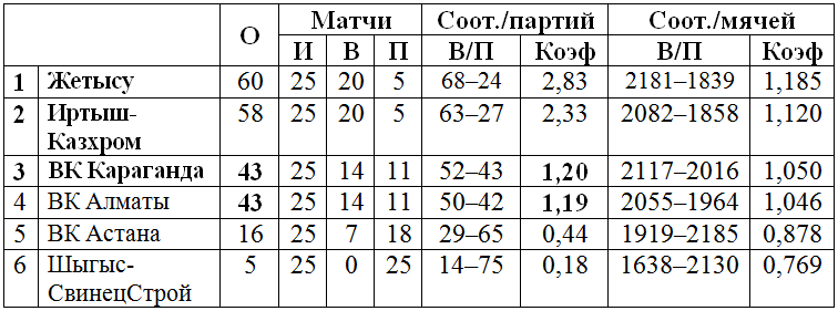 ВК «Караганда», +8 у ВК «Алматы»). Любопытно, что в предыдущем