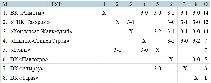 Примечание: В матче 3-го тура ВК «Атырау» — «ТНК Казхром», за нарушение