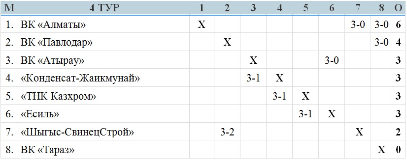 Примечание: В матче 3-го тура ВК «Атырау» — «ТНК Казхром», за нарушение