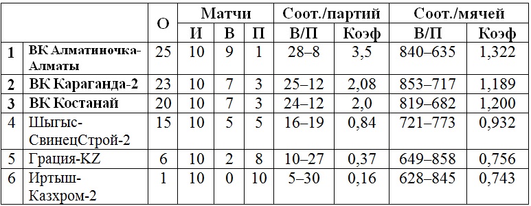 ВК «Алматиночка-Алматы», «Шыгыс-СвинецСтрой-2» (Усть-Каменогорск).