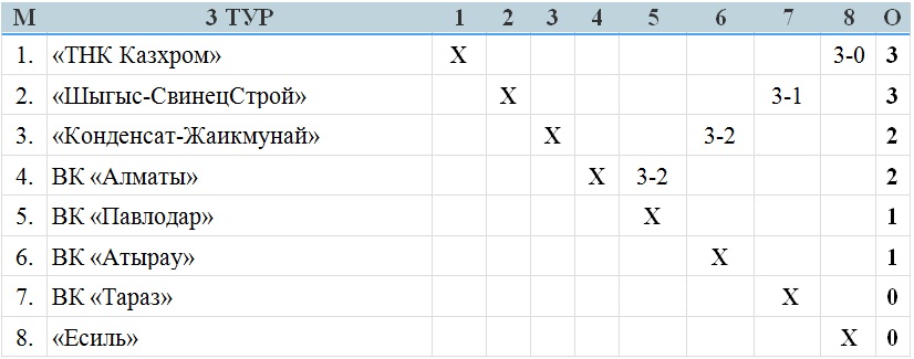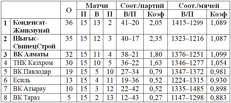 Подгруппа «Б»: ВК «Алматы», ВК «Павлодар», «Шыгыс-СвинецСтрой», ВК «Тараз».