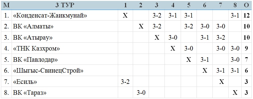 *Примечание: В матче 3-го тура ВК «Атырау» — «ТНК Казхром», за нарушение