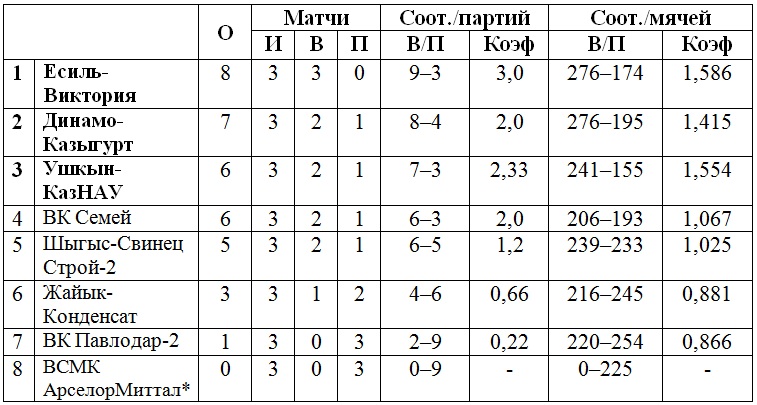 ВК «Павлодар-2», «Есиль-Виктория» (Петропавловск), «Жайык-Конденсат»