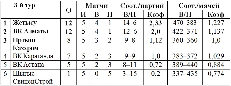 3-й тур. Усть-Каменогорск (13-18 января 2014). Победители — «Жетысу» и ВК «Алматы»