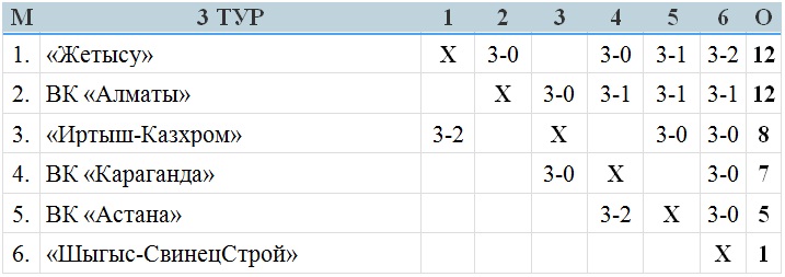 ВК «Алматы» — ВК «Караганда» — 3:1 (25-18, 22-25, 25-15, 25-20)