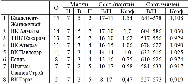 Подгруппа «Б»: ВК «Алматы», ВК «Павлодар», «Шыгыс-СвинецСтрой», ВК «Тараз».