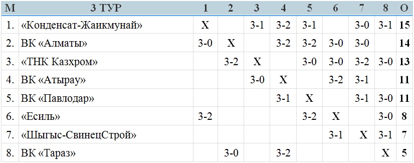 Примечание: В матче 3-го тура ВК «Атырау» — «ТНК Казхром», за нарушение