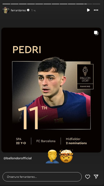 Торрес опубликовал в инстаграм изображение с итоговым местом Педри и сопроводил его эмодзи, выражающим недоумение.