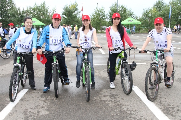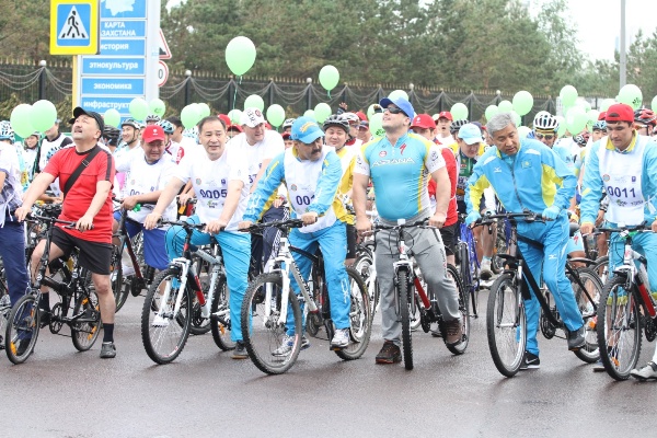 В 8:40 велолюбители разных возрастов выстроились в колонну. В первых рядах стартовали аким города Имангали Тасмагамбетов вместе с председателем Агентства по делам физической культуры и спорта РК Тастанбеком Есентаевым. Также к ним присоединились триумфаторы Олимпиад разных лет Илья Ильин, Серик Сапиев, Бахтияр Артаев и Юрий Мельниченко. Всю дистанцию жители города смогли преодолеть бок о бок с акимом города и своими кумирами — известными казахстанскими спортсменами.