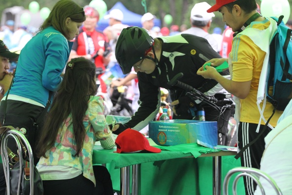 Сбор участников начался в 8 утра, и, несмотря на раннее утро выходного дня, количество участников велопробега было впечатляющим. На площади у «Салтанат Сарайы» все желающие сначала прошли регистрацию. У каждого велосипедиста на груди был свой индивидуальный номер. Всего был зарегистрирован 1521 участник. Кроме того, все велолюбители могли внести свой вклад в развитие спорта среди людей с ограниченными возможностями — воспитанников спортивного клуба «Кайсар».