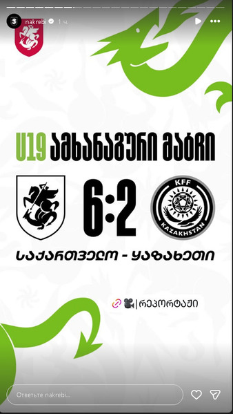 УТС сборной Казахстана U-18 в Тбилиси начался 26 марта и завершится 30-го числа. В заключительный день сборов команде предстоит сыграть второй матч против сегодняшних оппонентов.