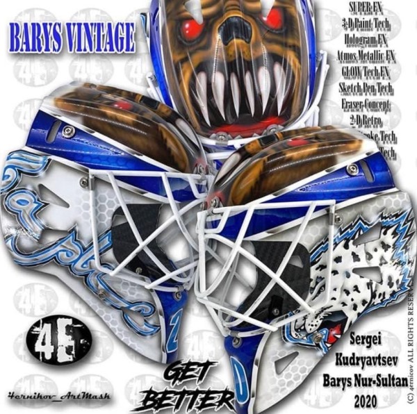 Голкипер казахстанского «Барыса» Сергей Кудрявцев поделился новым дизайном шлема на сезон КХЛ-2020/21, передает Sports.kz.
