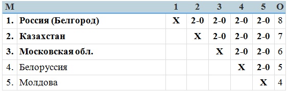 поочередно обыграла команды — Московской области, Молдовы и Белоруссии.