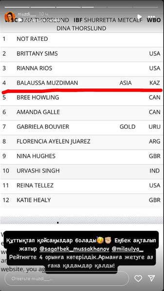 Казахстанская боксерша Балауса Муздиман поделилась радостной новостью, сообщает Sports.kz.
