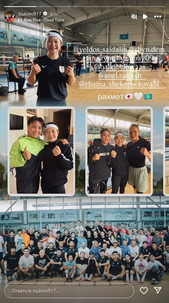 Намики опубликовала совместные фотографии и выразила благодарность представителям женской сборной Казахстана по боксу. В частности: в своей публикации она отметила главного тренера Елдоса Сайдалина, членов сборной: Назым Кызайбай, Алуу Балкибекову, Анель Сакыш и Жайну Шекербекову.