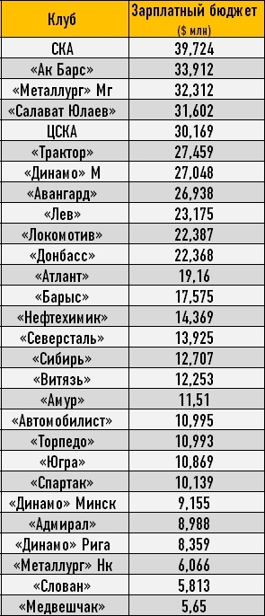 Если все зарплатные бюджеты команд КХЛ свести в одну красивую табличку, то выглядеть это будет приблизительно так: